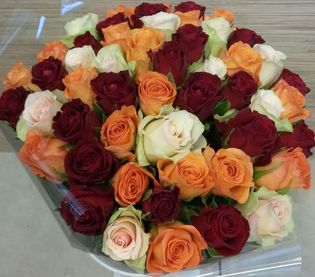 - 51 роза высотой 60см, пр-во Эквадор, цветные = 9639 руб
